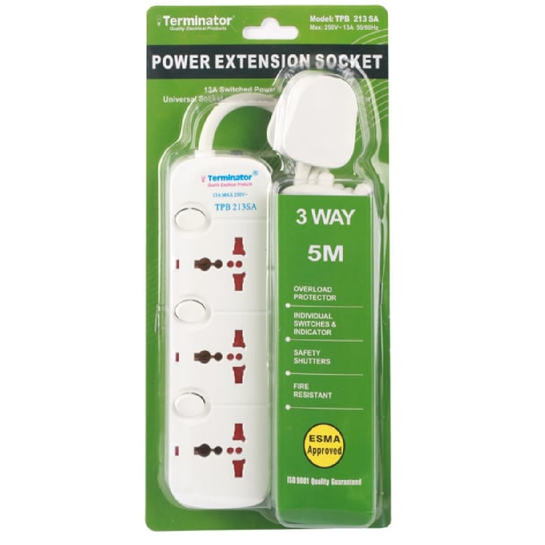 وصلة كهرباء 3 ترميناتور مداخل و مدخلين يو اس بي - 5 متر