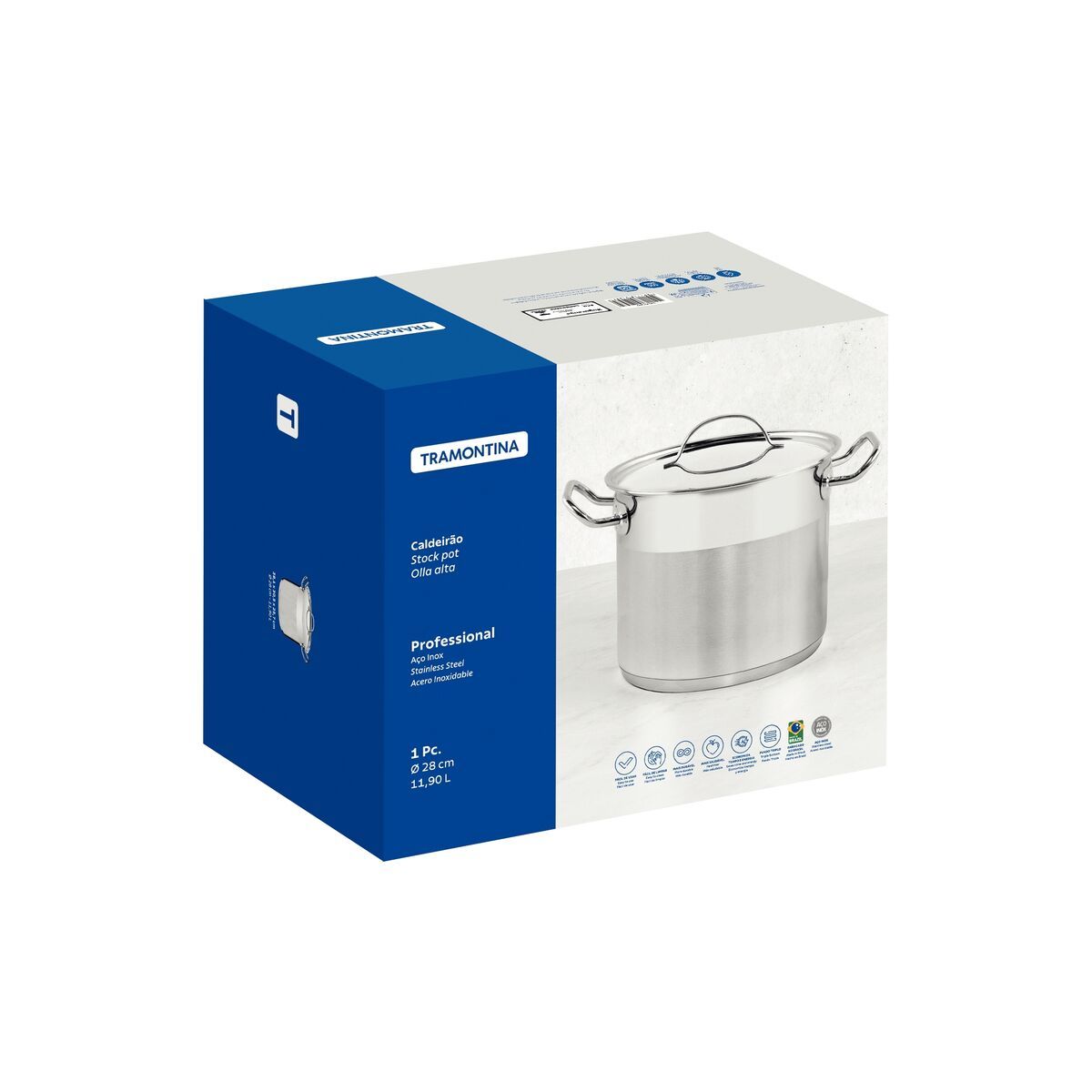 اسم المنتج بالإنجليزي: Tramontina Professional Stainless Steel Pot with Lid 28 cm