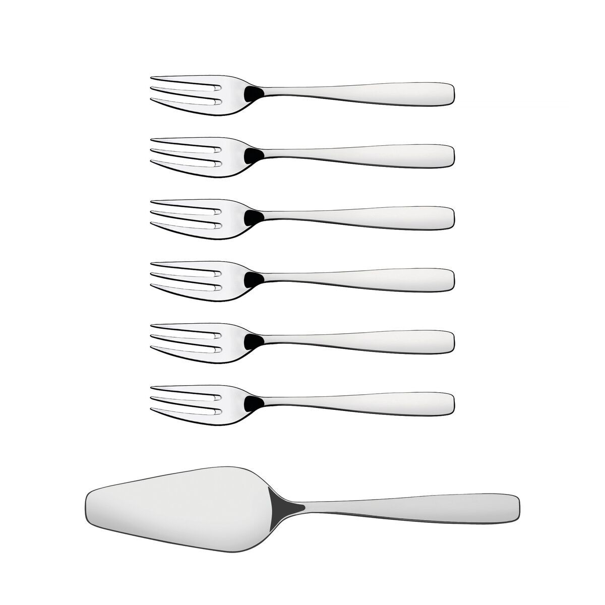 - عدد القطع: 7 (6 شوك كيك، 1 ملعقة تقديم كيك)