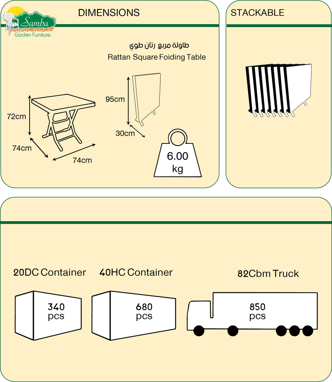 طاولة راتان مربعة قابلة لطوي بأرجل ألومنيوم من سامبا - سهلة الحمل والتخزين