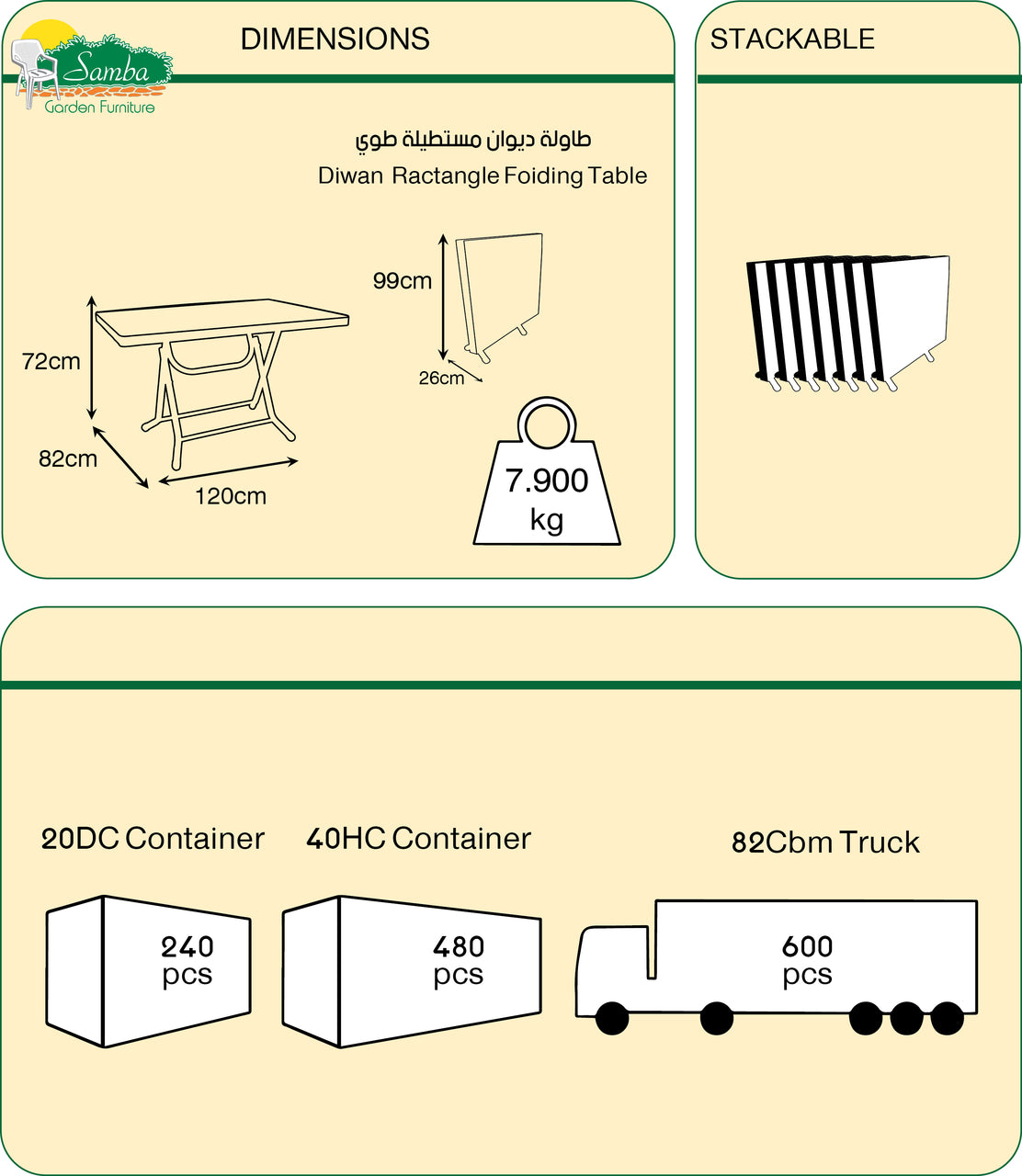 اسم المنتج بالإنجليزي: Folding Rectangular Diwan Table