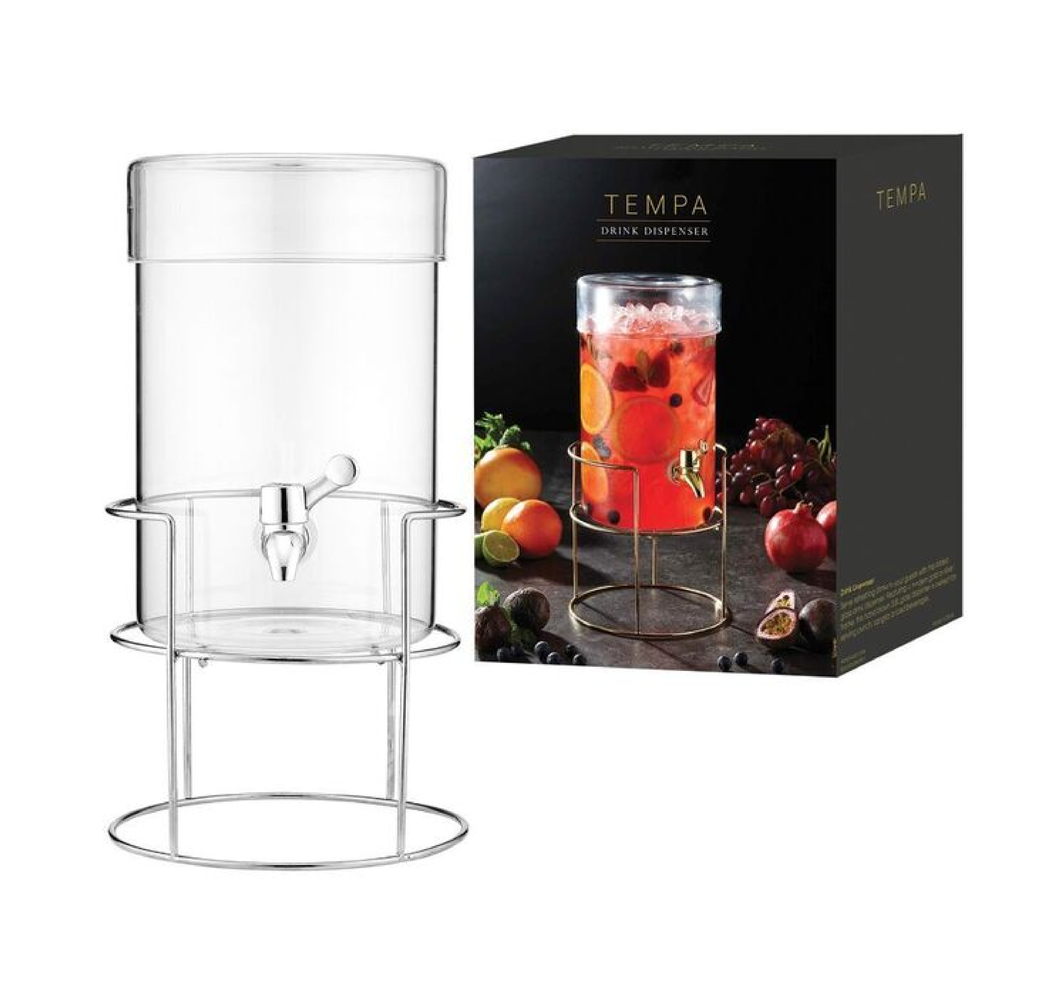 The Ladelle Tempa Quinn Silver Drink Dispenser is a perfect beverage serving solution while entertaining guests. Featuring a 3.8 litre capacity, stunning metallic accents and composed of durable borosilicate glass, this is a hassle-free and elegant option for serving friends and family. This dispenser is a fantastic gifting item as it comes in gorgeous packaging and is also available with gold accents – find the finish to suit the aesthetic in-store or online at Harris Scarfe.
