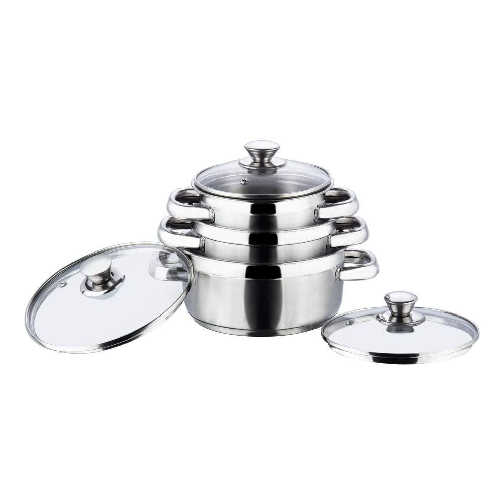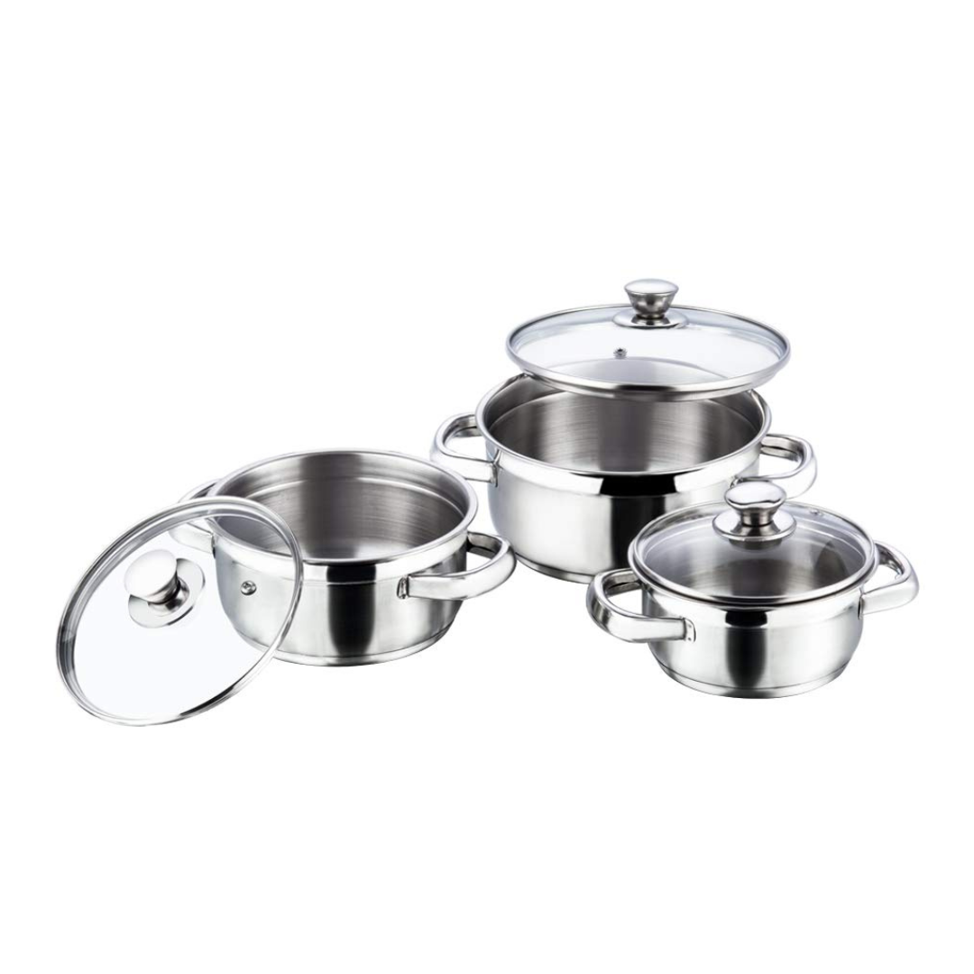 طقم طناجر فينود ستانلس ستيل بريمن مع غطاء زجاجي - 3 قطع - 1 لتر، 1.5 لتر، 2 لتر