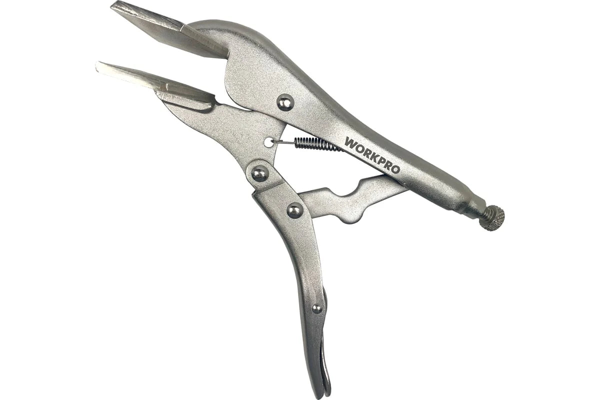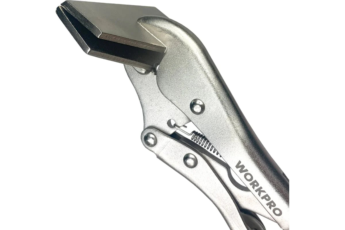 تم تصميم كماشة قفل الألواح مقاس 10 انش من Workpro لتحقيق أقصى قدر من القوة والمتانة، حيث تتميز بفكين من الفولاذ الكربوني يوفران قبضة آمنة على مواد مختلفة. يضمن القفل والفك السريع والسهل، إلى جانب آلية التحرير المحمية، التشغيل السريع والآمن. يسمح المسمار القابل للتعديل بضغط تثبيت دقيق ليناسب قطع العمل المختلفة.