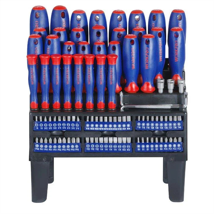 طقم مفكات براغي WORKPRO (100 قطعة) مع رف | WP200507