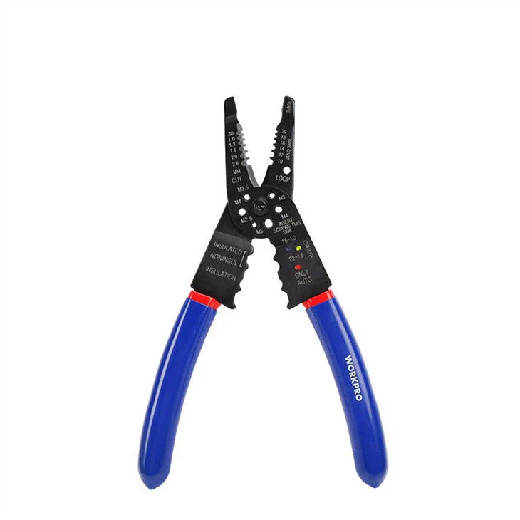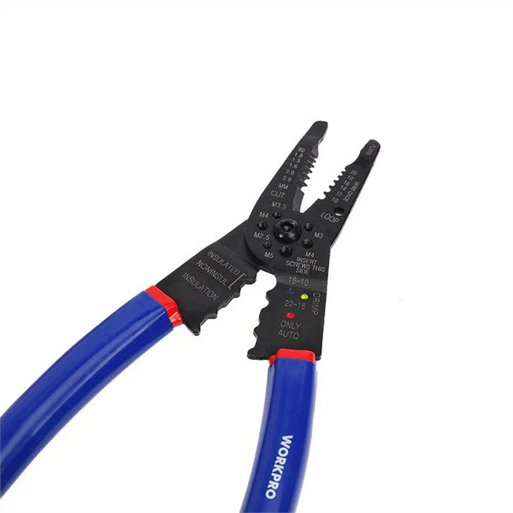 أداة WORKPRO WP291003 هي أداة متعددة الاستخدامات لتعرية الأسلاك، بطول 200 مم (8 بوصات)، مصممة لتحقيق الدقة والكفاءة. مثالية للكهربائيين وهواة الأعمال اليدوية، حيث تجمع وظائف متعددة في أداة واحدة مدمجة.