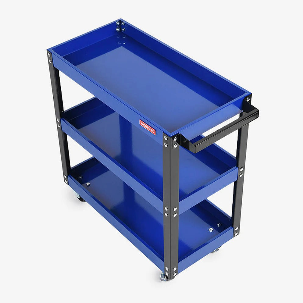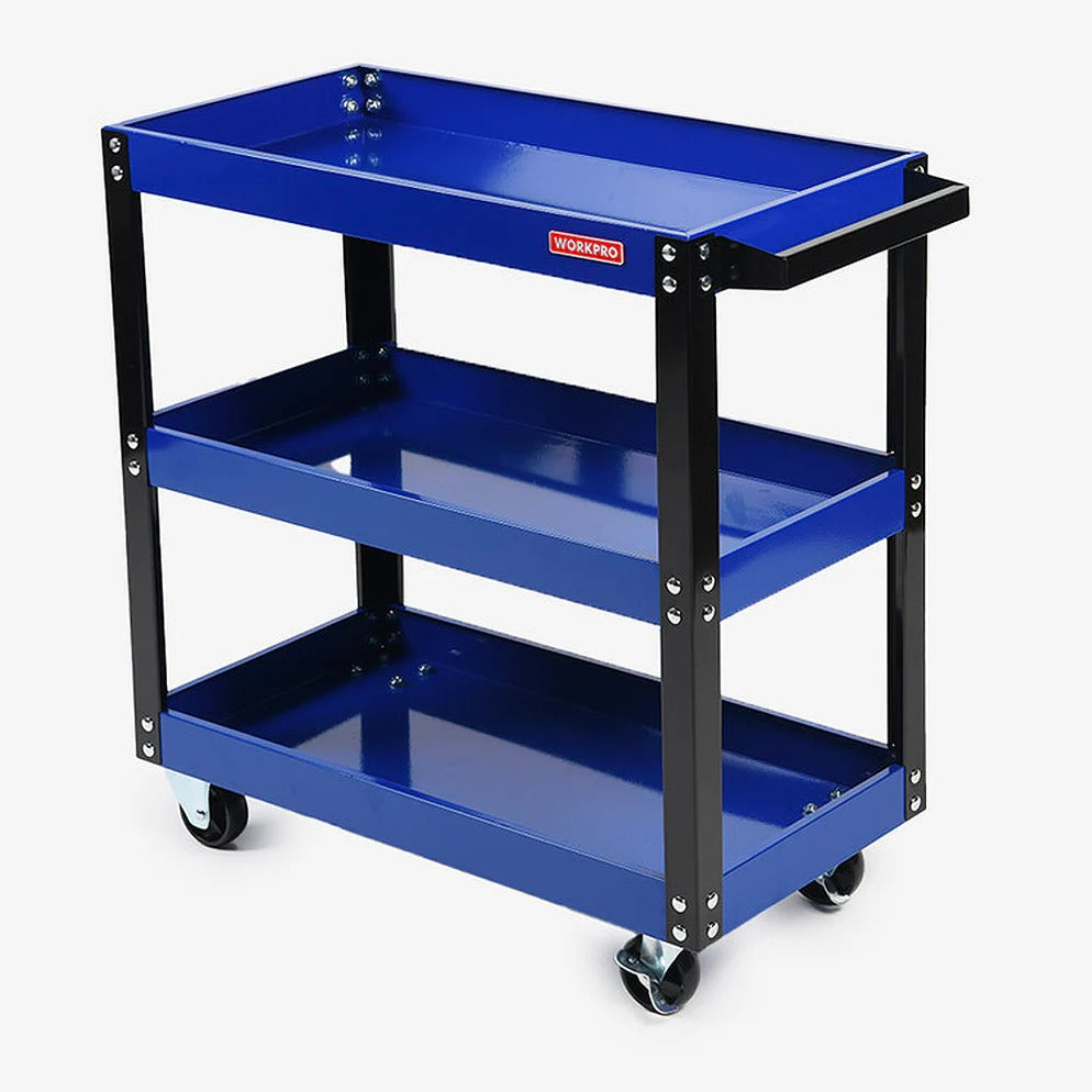 عربة الأدوات WORKPRO WP285001 مصممة للمحترفين والهواة. مصنوعة من الفولاذ عالي الجودة مع تشطيب مقاوم للتآكل، توفر مساحة تخزين واسعة وسهولة في التنقل لتنظيم ونقل الأدوات بكفاءة.
