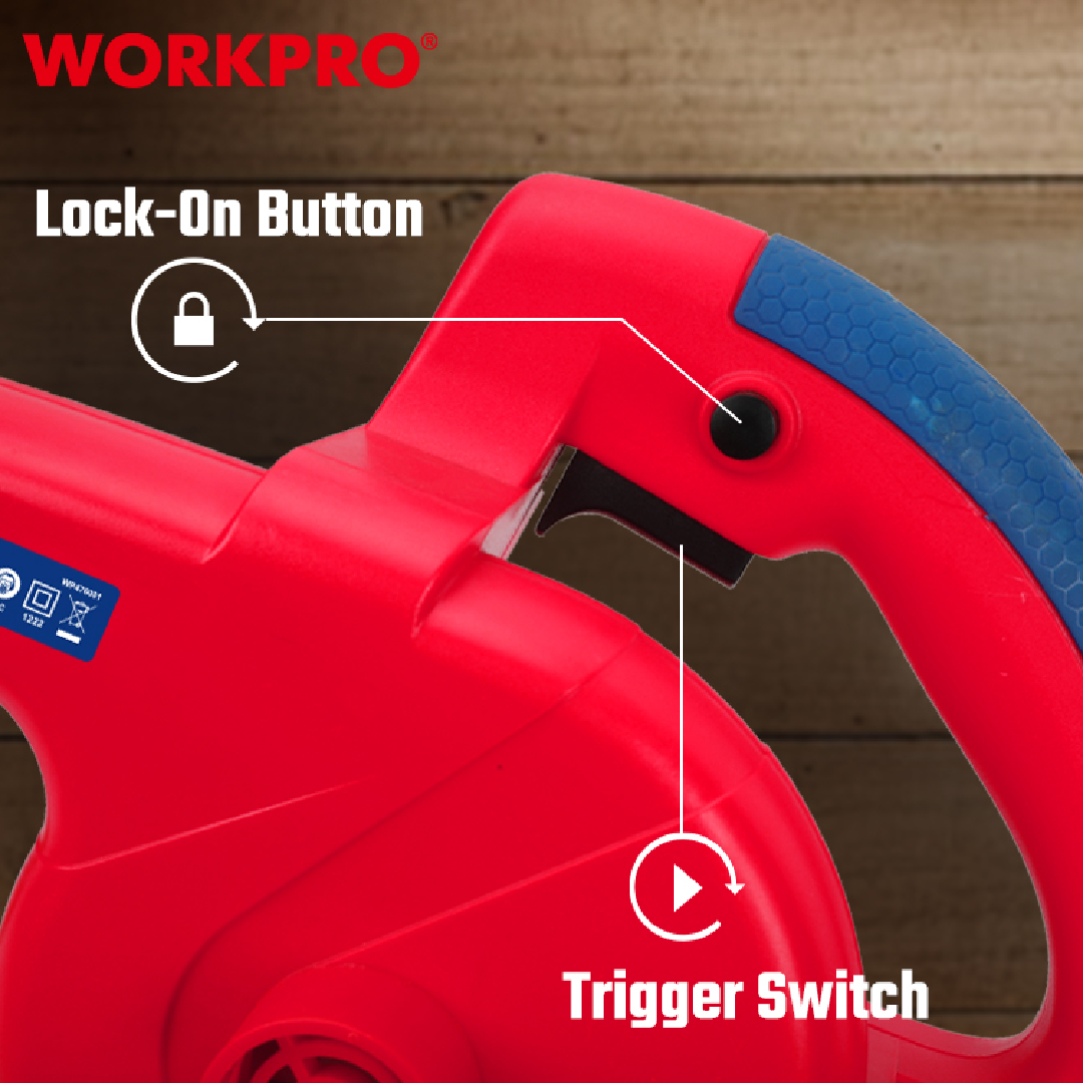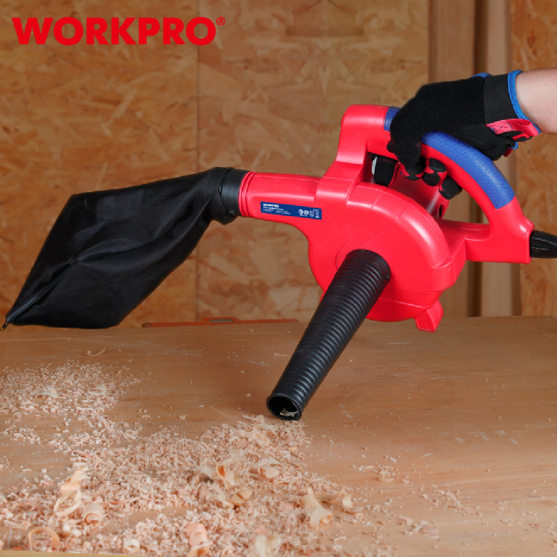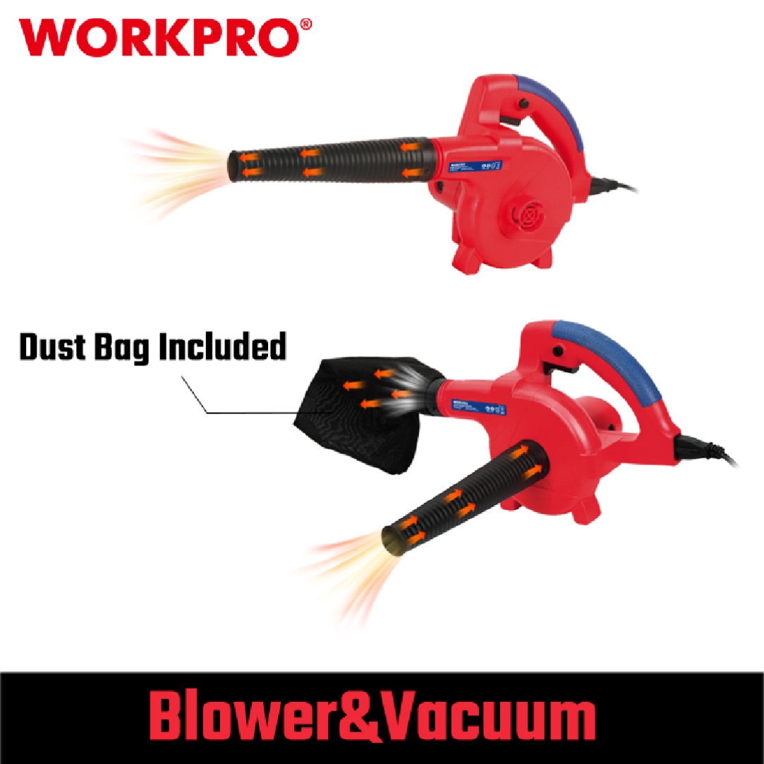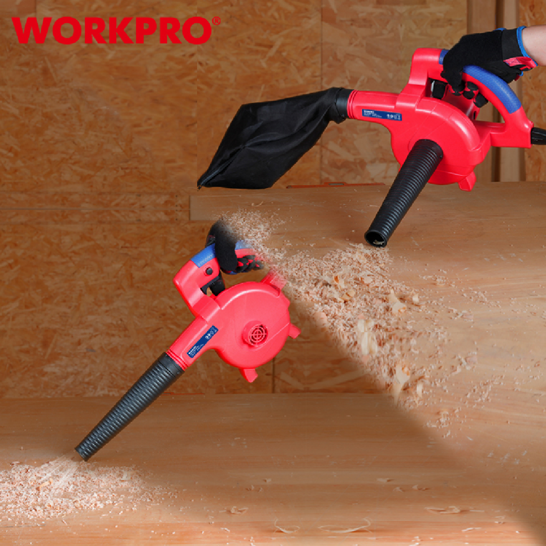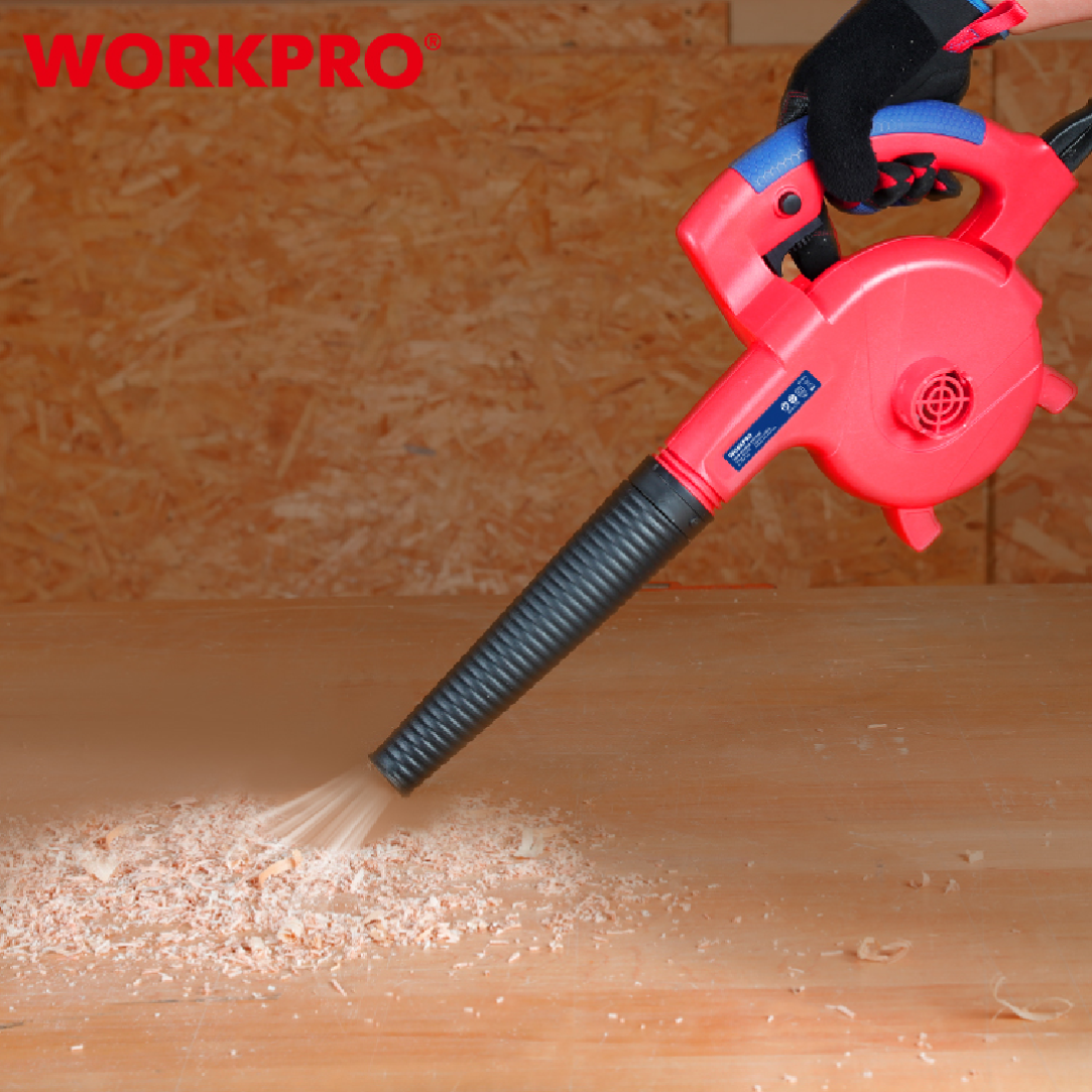 منفاخ هواء كهربائي من WORKPRO — موديل WP476001 بقدرة 400W، خفيف وسهل الاستخدام لتنظيف الغبار في الورش، المنازل، أجهزة الكمبيوتر، السيارات، والمعدات الكهربائية. يتميز بصغر حجمه وقوة نفخ مناسبة للأعمال اليومية.
