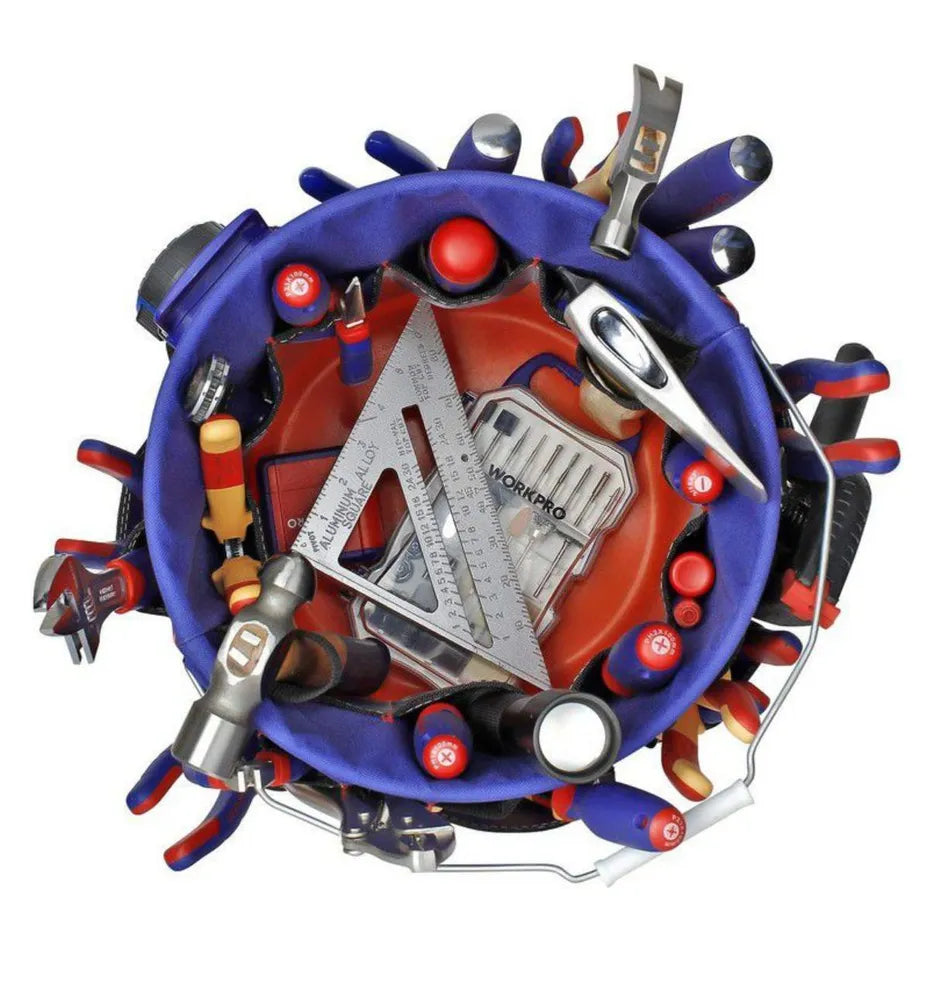 يحوّل منظم أدوات WORKPRO WP281010 سطلًا قياسيًا بسعة 5 جالون إلى حل تخزين أدوات متعدد الاستخدامات. مصمم للمحترفين وهواة الأعمال اليدوية، يوفر مساحة تخزين واسعة مع 51 جيبًا، مما يضمن تنظيم الأدوات وسهولة الوصول إليها.