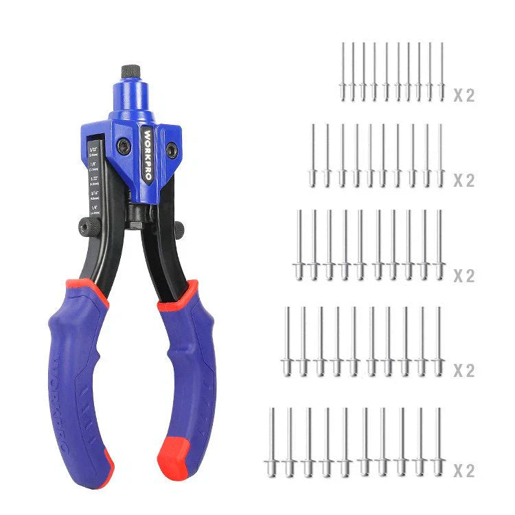 مجموعة WORKPRO WP225004 هي مجموعة مسامير برشام يدوية متعددة الاستخدامات، متينة، 5 في 1، مصممة لمختلف تطبيقات البرشام. تصميمها المتين وهيكلها المريح يجعلها مناسبة للاستخدام المهني والمنزلي.