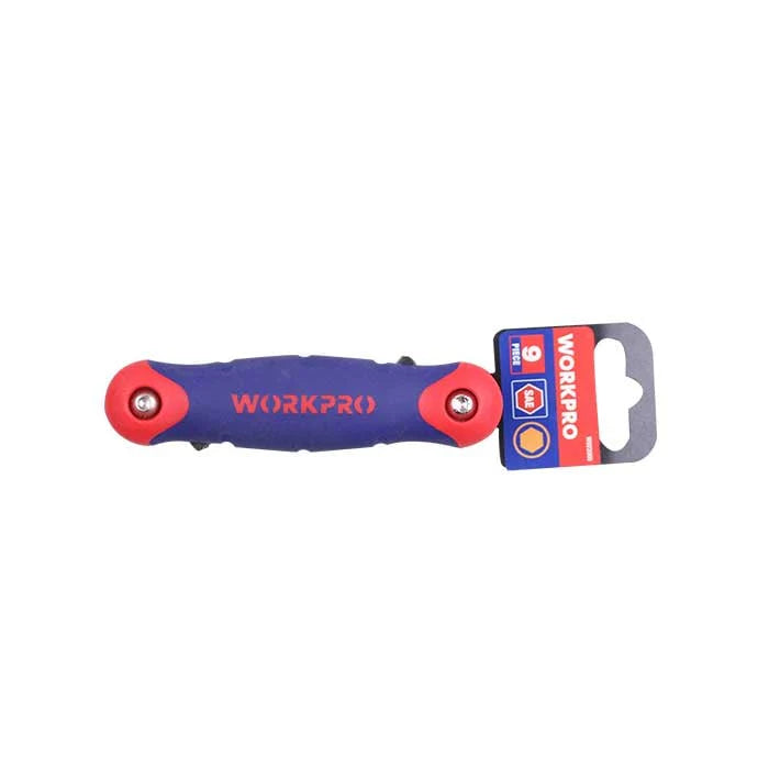 مجموعة مفاتيح الانكي WORKPRO W022005WE هي مجموعة مفاتيح سداسية قابلة للطي من 9 قطع، مصممة لمثبتات SAE. مصنوعة من فولاذ الكروم الفاناديوم المقوى والمقسى، يتميز كل مفتاح بالقوة والمتانة. يوفر المقبض المريح قبضة مريحة، كما يضمن التصميم المدمج القابل للطي سهولة التخزين والحمل.
