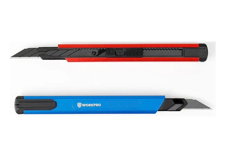 مشرط تخطيط رفيع WORKPRO المصنوعة من الألومنيوم مقاس 9 مم (WP212012) هي أداة قطع دقيقة مصممة لضمان المتانة وسهولة الاستخدام. يوفر مقبضها المصنوع من الألومنيوم قبضة خفيفة الوزن ومتينة، بينما تضمن شفرة SK5 مقاس 9 مم القابلة للفك حدة وعمرًا طويلاً. تتميز السكين بشفرة مدببة بزاوية 30 درجة لقطع دقيق وآلية قفل تلقائي للسلامة. مثالية لقطع مواد مثل الورق والبلاستيك والجلد وغيرها.