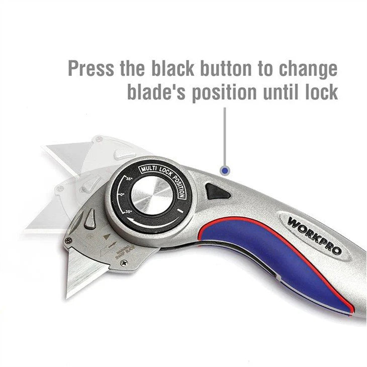 مشرط WORKPRO WP211013 هو سكين احترافي قابل للطي، مصمم ليضمن المتانة وتعدد الاستخدامات. مصنوع من مقبض من الألومنيوم المصبوب المطلي بالمسحوق، ويوفر آلية تغيير سريع للشفرة لسهولة استبدالها. يتميز السكين برأس مائل لزيادة الرفع، ووضع قفل متعدد بثلاث زوايا، مما يجعله مناسبًا لمختلف مهام القطع، سواءً في البيئات الاحترافية أو المنزلية.