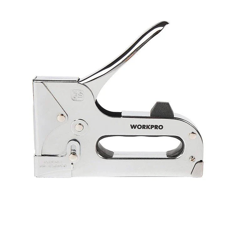 مسدس دباسة WORKPRO WP223004 اليدوي عالي التحمل، مصمم لتطبيقات تثبيت متنوعة. يضمن تصميمه الهندسي الدقيق تدبيسًا دقيقًا، بينما يوفر طلاء الكروم المتانة. مقبض القفل سهل الدفع يقلل من إجهاد اليد أثناء الاستخدام لفترات طويلة، ونظام إزالة الدبابيس العالقة يسمح بإزالة الدبابيس العالقة بسرعة.